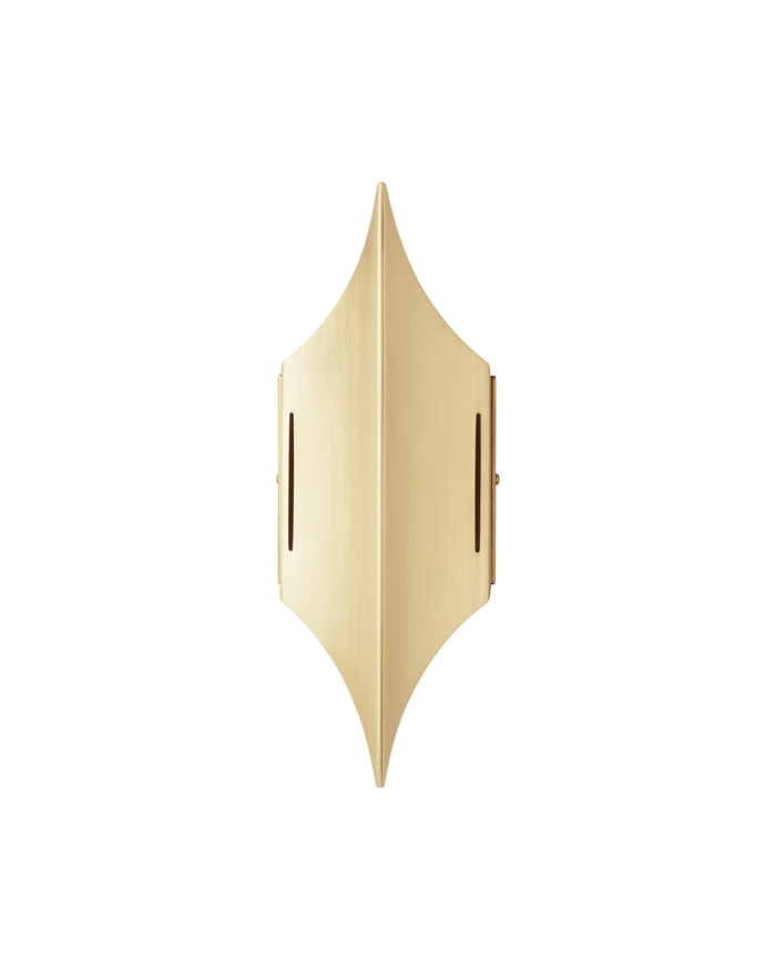 KONCEPT & HANTVERK GOTHIC-serien består av två vägglampor med en eller två geometriska skärmar. Varje nyans är gjord av ett massivt mässingsark med vertikala borstade linjer och vikta på mitten för att skapa den ikoniska och igenkännliga looken.