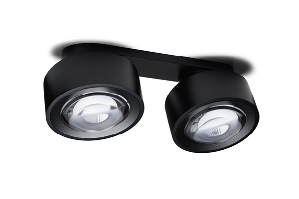 EASY Lens Double är en lampa med 2 spotlights med en böjd lins nedtill, som sprider ljuset jämnt och diffust utan att orsaka obehagliga bländningseffekter.