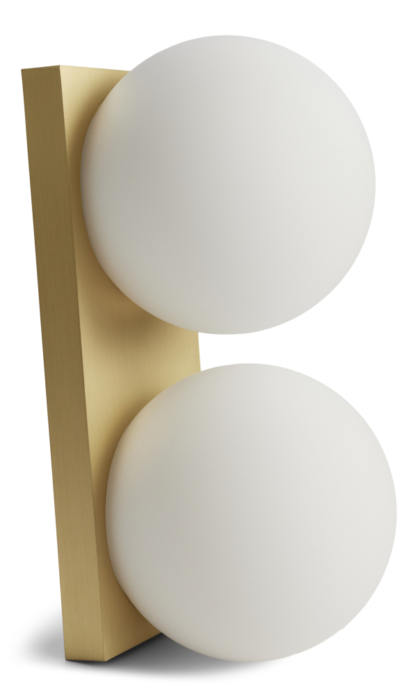De klotformade glaslamporna är monterade på en bas i aluminium, som skapar en elegant kontrast till det fina glaset. Basen finns i mässing och titan, så du har möjlighet att matcha din personliga stil.