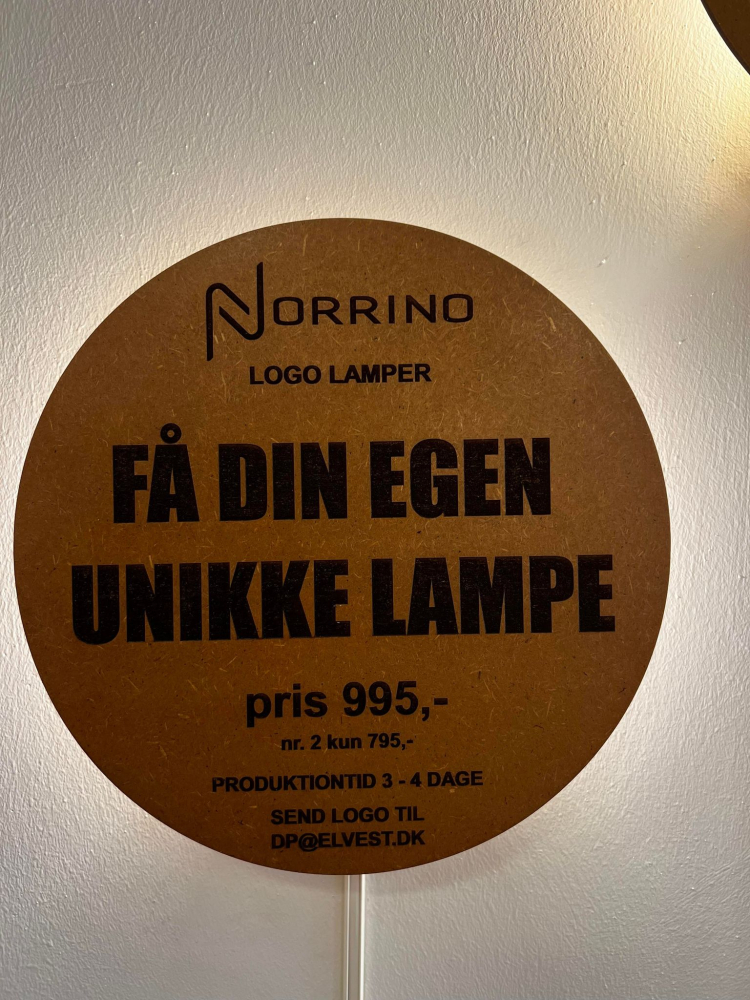 Norrino har kommit med ett helt nytt koncept där du kan få din egen text/logga producerad på en vägglampa från Norrino . Lampan är tillverkad 100% hållbart.