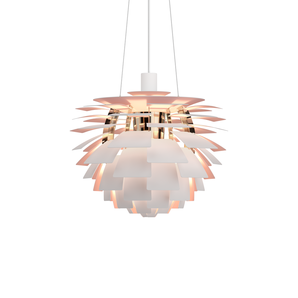 Precis som den ursprungliga designen från 1958 är bladen på PH Artichoke Anniversary Edition målade i en blekrosa nyans på undersidan av den reflekterande sidan. Detta tillför en varmare och mjukare touch till ljuset, vilket skapar en ännu mer behaglig atmosfär i rummet.