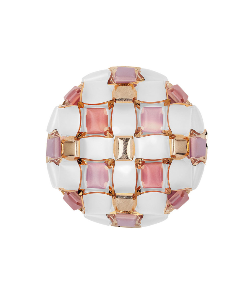 De handgjorda "ädelstenarna" är sammansatta med SLAMPs exklusiva magnetsystem så att de överlappar en nästan osynlig ram. De silkeslena "stenarna" av borstad metall gör lampan extra lyxig och går hand i hand med en modern inredning där metalliska ytor fortfarande är en hit.