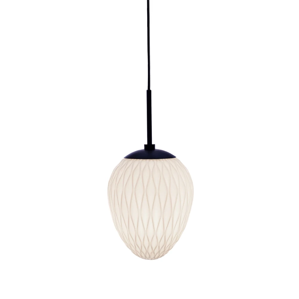 Woods Pendel är ett vackert hänge som fått sin ovala form från formen av en ekollon. Lampans fina mönster ger en karaktäristisk kant till designen som framstår som elegant och klassisk.