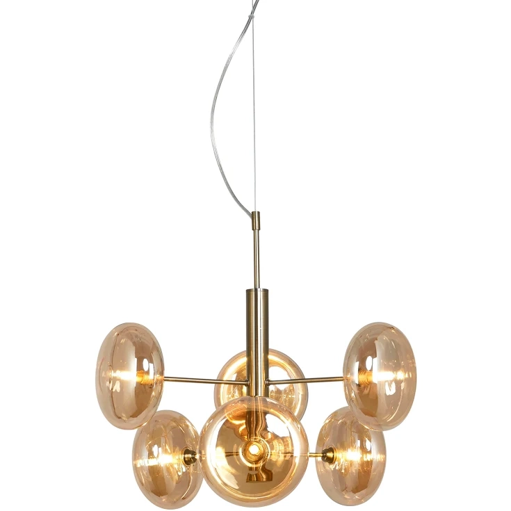 Få klassisk charm och modern funktion med Nielsen Light Continental ljuskrona i antik mässing. De gyllene glasen avger ett mjukt, varmt sken som skapar en mysig atmosfär och gör denna ljuskrona till centrum i ditt vardagsrum eller matsal.
