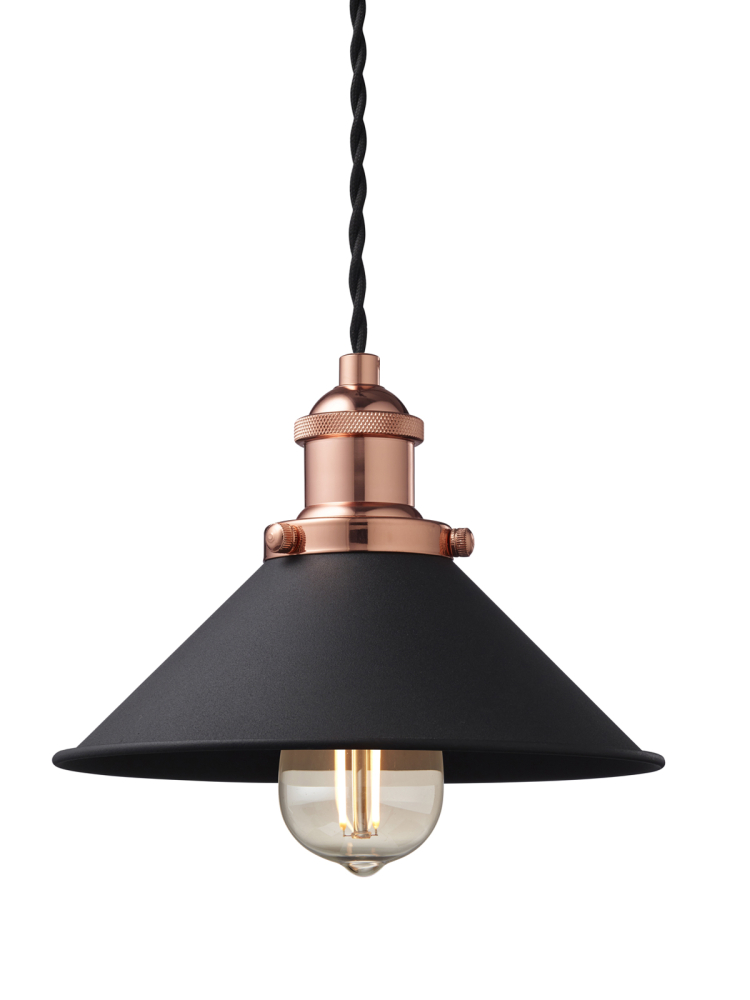 Verkligen snygg pendel från Nielsen Light med monterad 2,5 meter svart tvinnad textilkabel.
