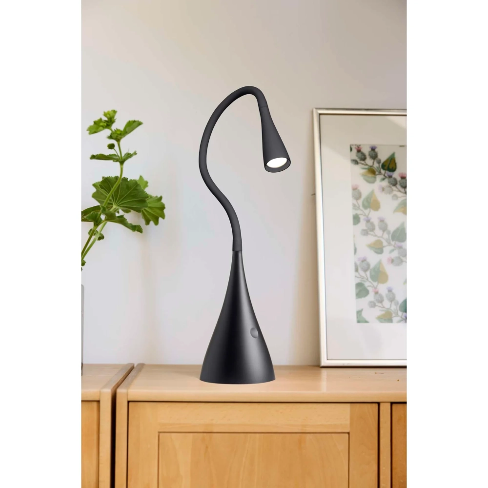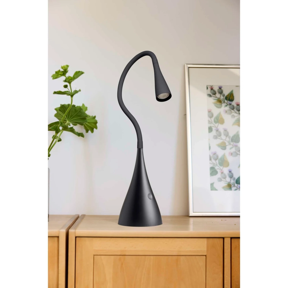 Twist LED Bordslampa från Nielsen Light kombinerar modern skandinavisk design med praktisk funktionalitet. Den eleganta, matta Svarta ytan och det slanka formspråket gör lampan till ett stilfullt element i varje inredning perfekt för vardagsrummet, sovrummet, kontoret eller som nattlampa.