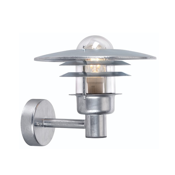 Denna vägglampa har en galvaniserad finish och en klar glaskupol som ger full insyn i ljuskällan. Det betyder att du kan välja en dekorativ glödlampa - som en LED-glödlampa med filament - om du vill ha en mysig och stämningsfull belysning. Eller så kan du använda en kraftfullare LED-glödlampa om du vill ha ett starkt och funktionellt ljus runt din ytterdörr, garage eller terrass.