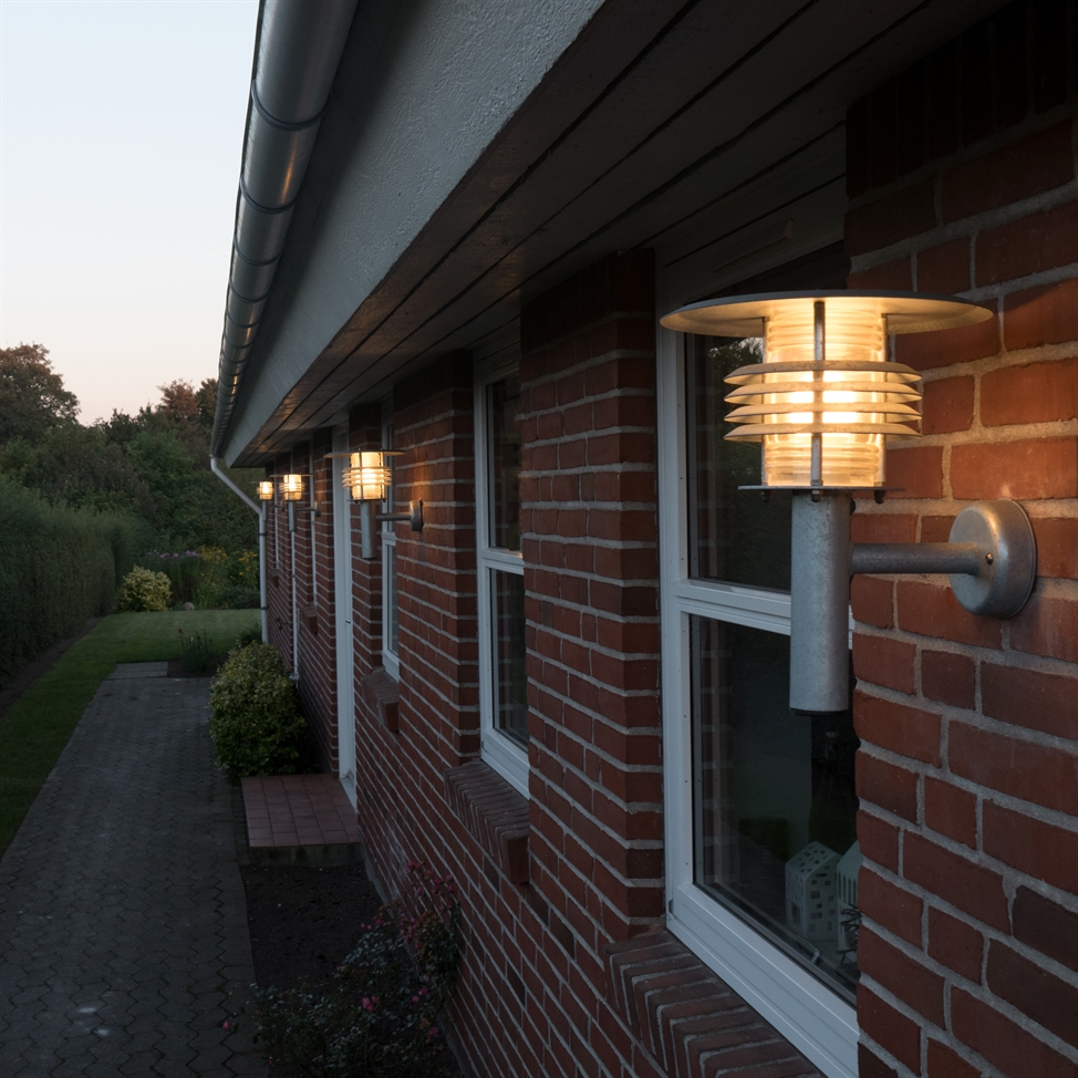 Henrik vägglampan är en enkel men robust utomhusvägglampa. Henrik ger med sina lamellskärmar ett bra ljus vid exempelvis entréer, dörröppningar eller andra lämpliga platser.