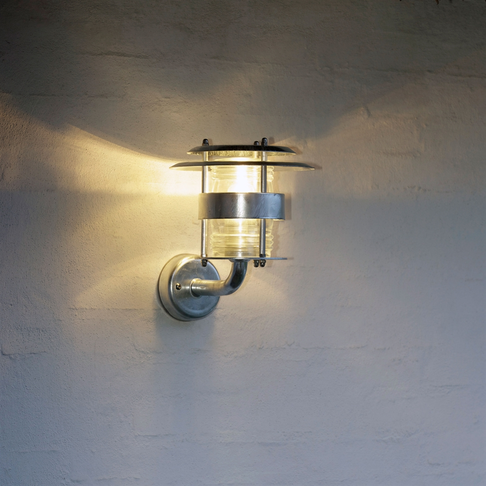 Jonas vägglampa ären vacker och elegantutomhusvägglampa. Jonas är en mindre vägglampa som med sina mjuka linjer ger ett vackert uttryck. Den dubbla lamellskärmen sprider ljuset mjukt.