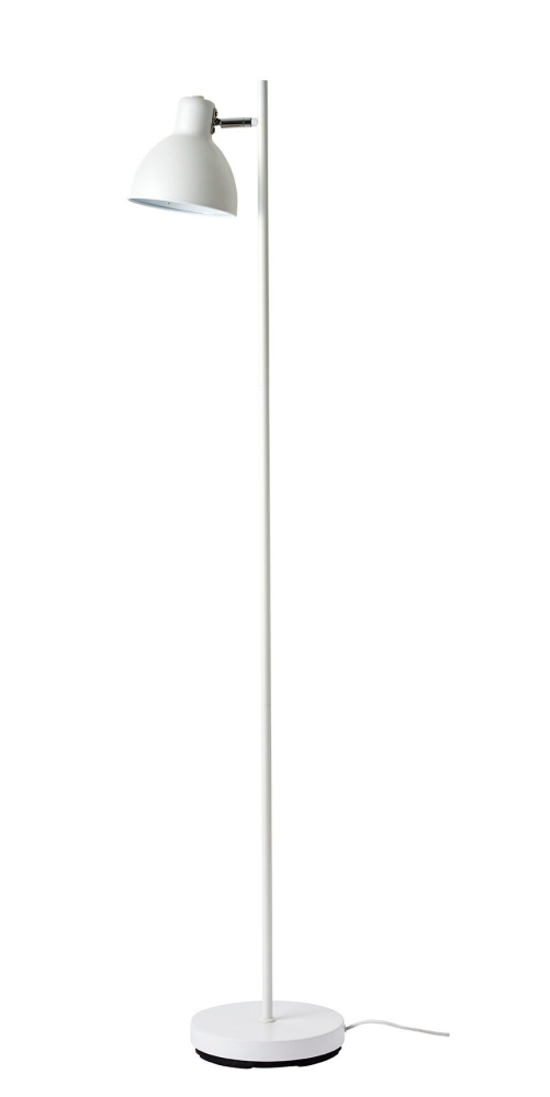 Golvlampan Skagen finns i matt svart eller vit och du kan även välja mellan ett eller två lamphuvuden.