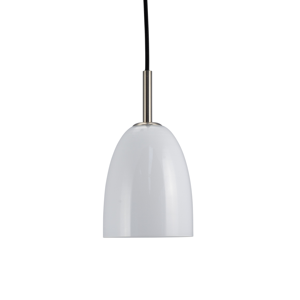 Opalglas med borstat stål som upphängning. Det borstade stålet ger lampan en egen karaktär.