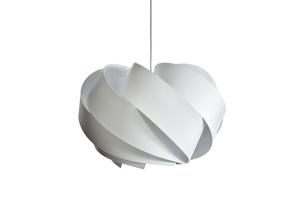 Lampans skulpturala, rundade linjer omsluter ljuskällan, och ljusets centrala virvlar fångar och sprider ljuset på ett nästan hypnotiskt sätt, där ljus och skugga harmoniskt växlar mellan varandra.