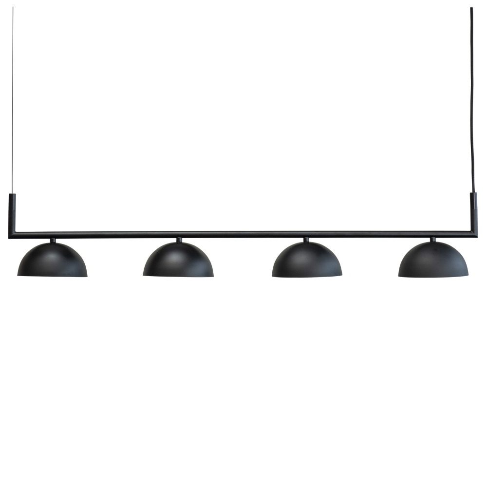 Lampan har 4 skärmar formade som halva kupoler fördelade på en enda upphängning.
