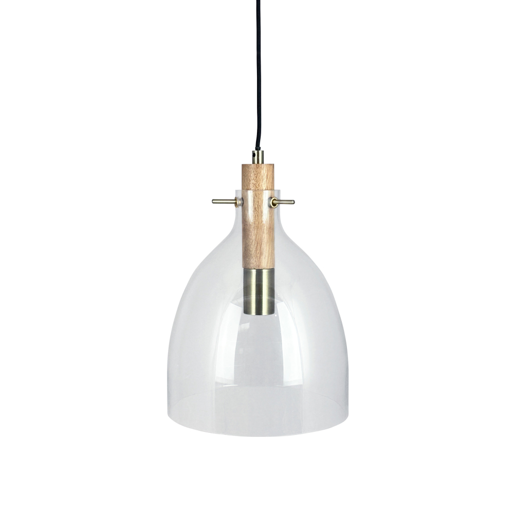 Bistro-pendeln är en vacker lampa som kombinerar klart glas, elegant ek och fina mässingsdetaljer.