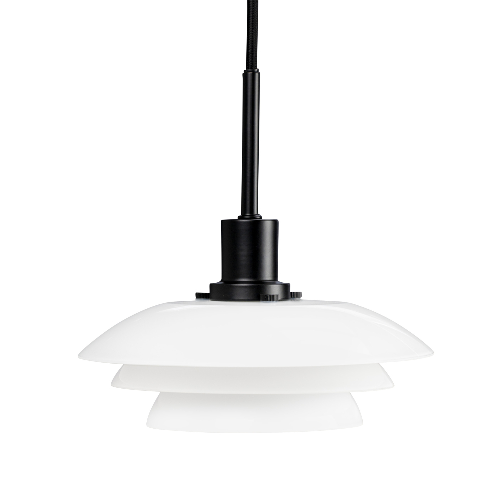 DL20 Opal Pendel med svart/metallfot är en vacker lampa som ser väldigt elegant ut över matbordet eller köksbordet.