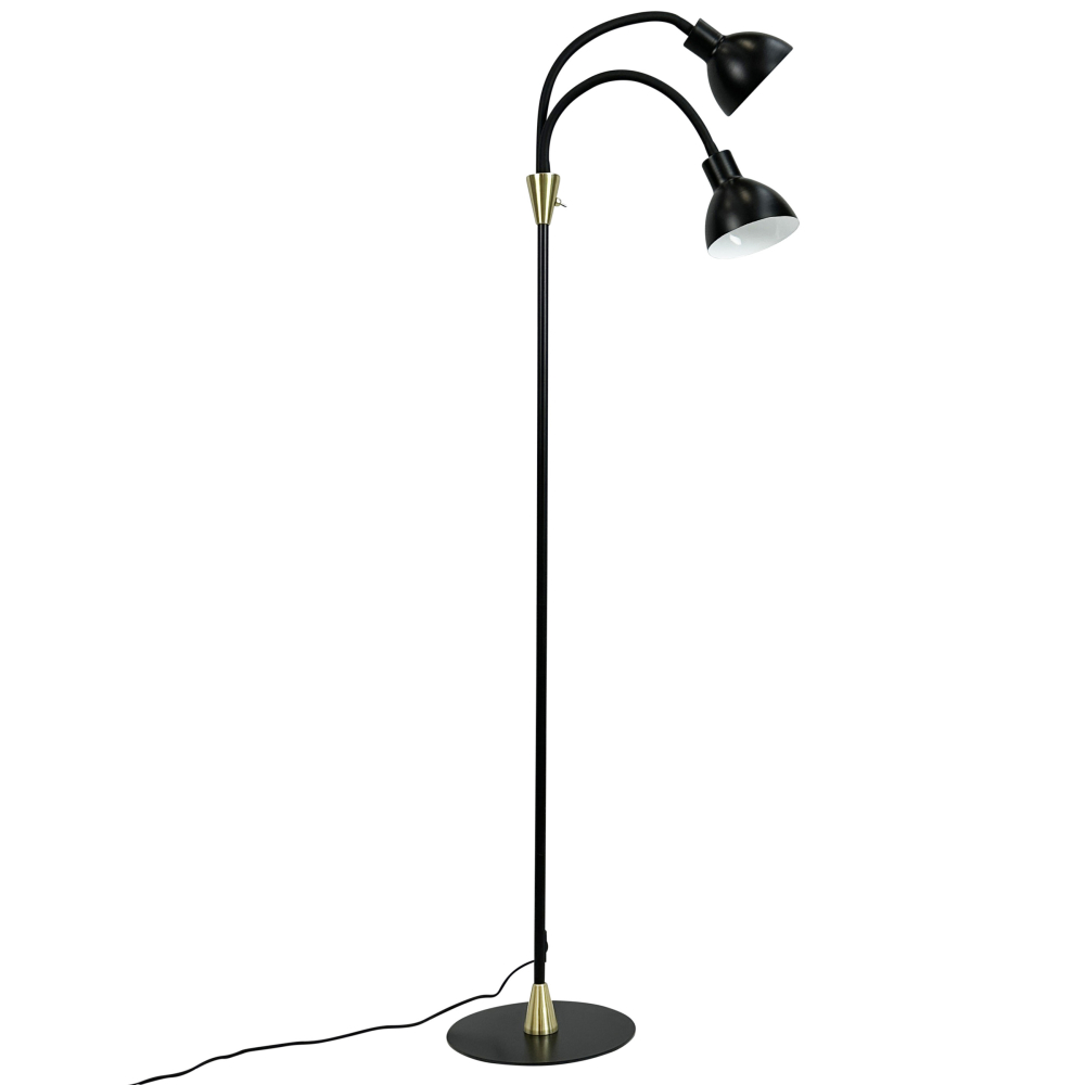 Gulvlampan Lilje i svart och mässing kombinerar modern design med flexibilitet och funktionalitet. Med sina justerbara flexarmar kan du enkelt justera ljusriktningen och skapa den perfekta belysningen i rummet. De två lampskärmarna ger ett diffust och behagligt ljus, perfekt för både avkoppling och arbete.