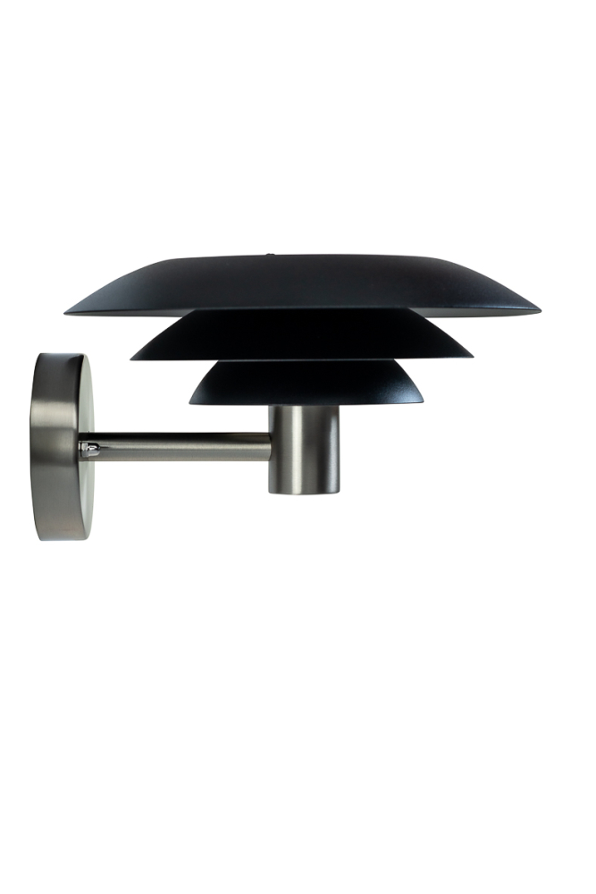 DL25 utomhusvägglampa i svart/stål ger dig den perfekta belysningen runt ditt hus. I linje med Dyberg Larsens DL-serie har utomhusvägglampan DL25 de ikoniska lampskärmarna i 3 olika storlekar, vilket ger ett ojämförligt ljus.
