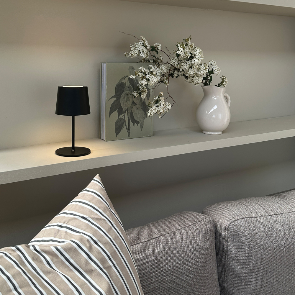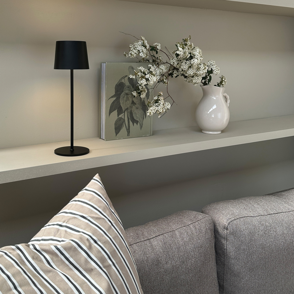 Upplev friheten med den uppladdningsbara bordslampan Karl, designad för dig som letar efter en mångsidig och elegant LED-lampa som enkelt kan flyttas runt inomhus och tas med utomhus. Bordlampan Karl kombinerar klassisk design med modern teknologi, vilket gör den till det perfekta valet för både hemmet och trädgården. Den uppladdningsbara bordslampan Karl levereras med 2 rör/lampstänger. Dessa kan sättas ihop och du kan göra både en låg och en högre lampa, beroende på dina behov och humör.