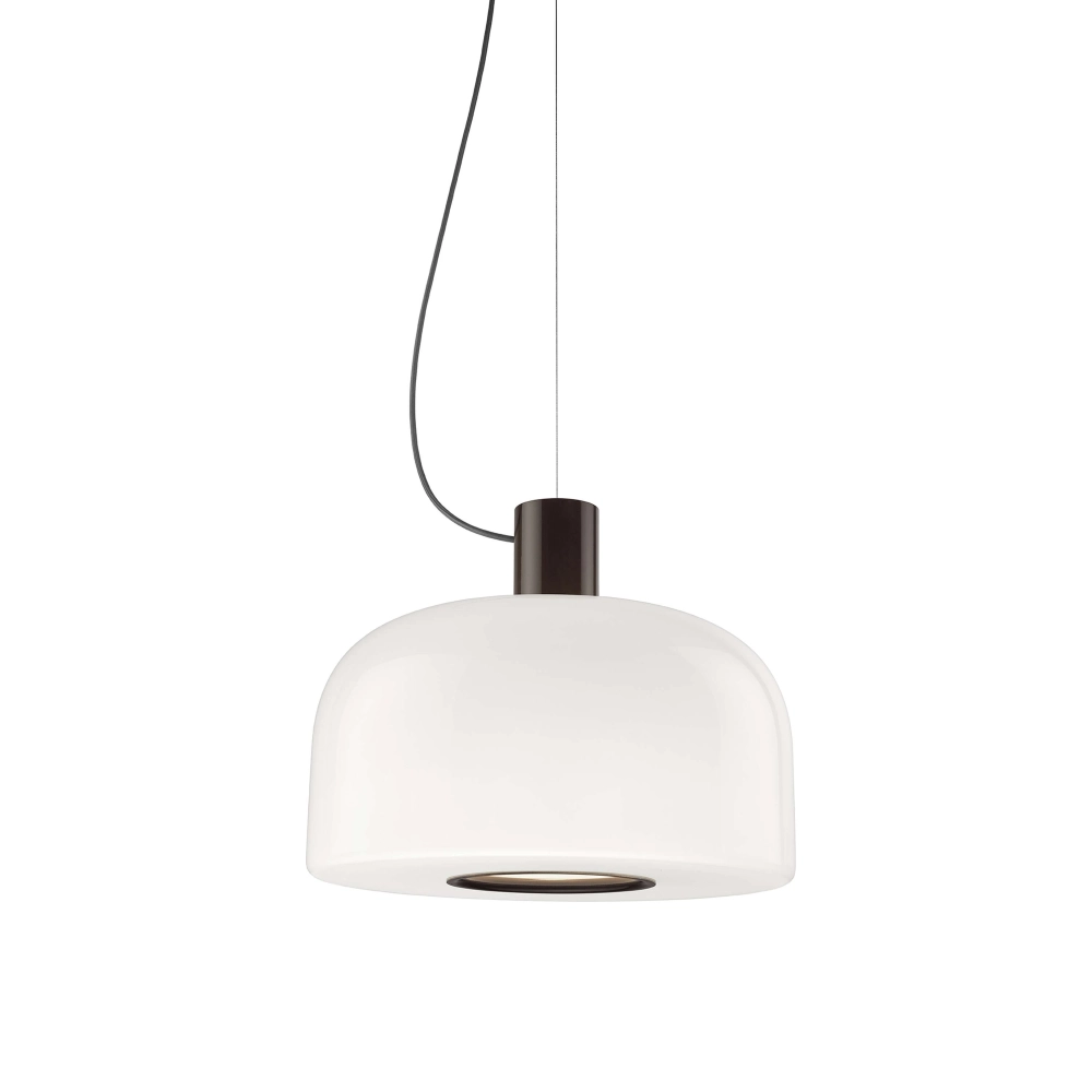 Bellhop Glass S2 Pendel Cioko från Flos är en elegant pendellampa som kombinerar funktionalitet och stil. Denna lampa är tillverkad av glas och aluminium, vilket ger den ett modernt och sofistikerat uttryck. Med en diameter på 45 cm passar den perfekt över matbordet eller i vardagsrummet, där den kan fungera både som stämningsbelysning och som direkt arbetsljus. Den unika konstruktionen säkerställer att ljuset riktas precist mot ytan nedanför, utan att blända dem som sitter runt bordet. Den smarta öppningen i botten, omgiven av en färgad aluminiumring, gör det enkelt att byta glödlampa och säkerställer att ljuset inte sprids uppåt. Bellhop Glass S2 Pendel Cioko finns tillgänglig i klassiska färger som svart och vit, vilket gör den lätt att integrera i vilken inredning som helst. Ge ditt hem en touch av elegans med denna mångsidiga pendellampa.