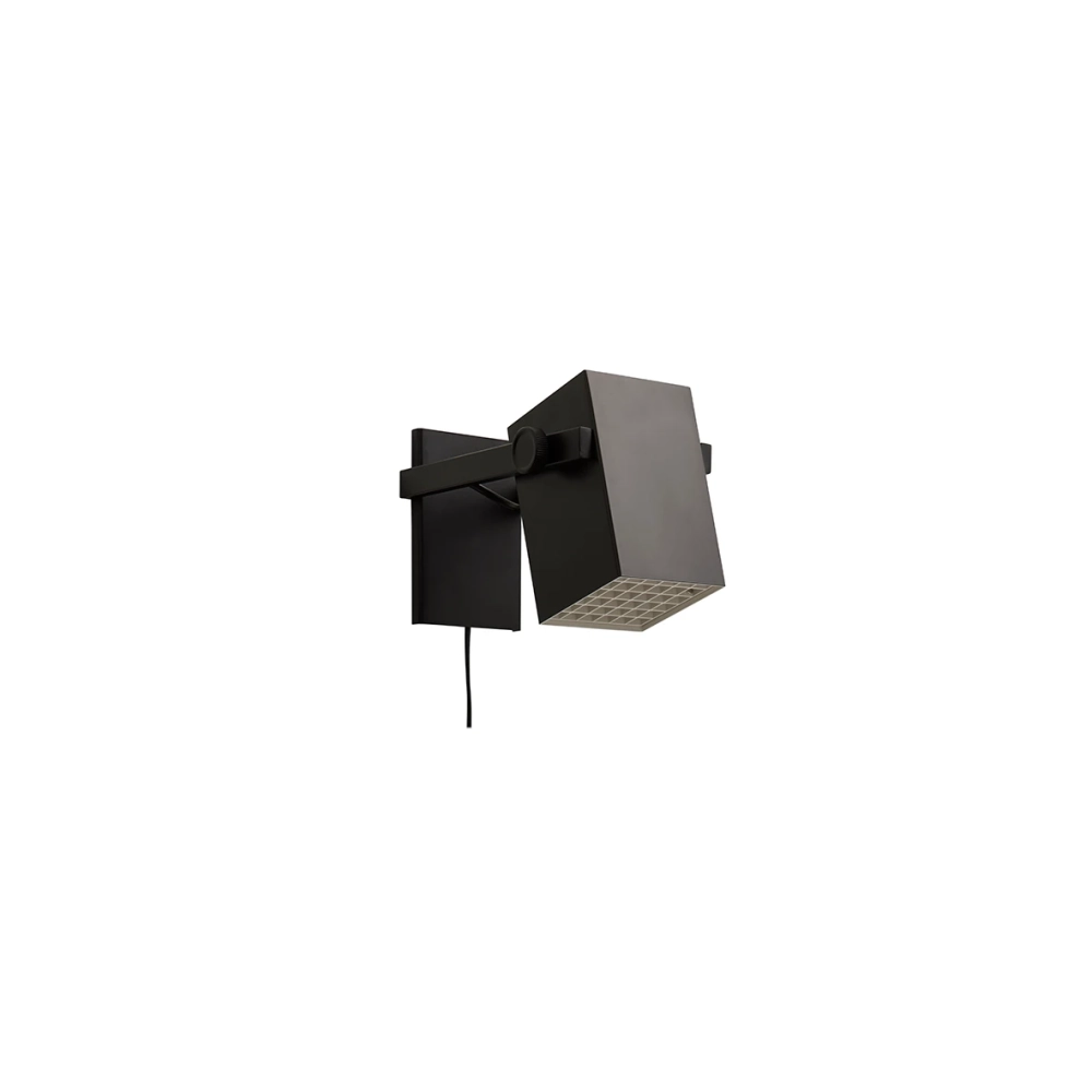 BF Quadro Vägglampa Matt Black är en vacker reproduktion av den danska designern Benny Frandsens första armaturdesign och en autentisk återspegling av 1960-talets designera. Lampan ingår i BF-kollektionen men står samtidigt i kontrast till den övriga serien, som präglas av mjuka, runda former, med sitt kvadratiska lamphuvud och fyrkantiga formspråk, som upprepas på alla lampans övriga delar. Detta ger lampan ett självsäkert och karaktärsfullt formschema med ett klart och koncist designkoncept. Som pricken över i:et är ljusutgången avskärmad av ett galler, där det kvadratiska mönstret återkommer och framträder tydligt varje gång lampan tänds. Ljuset avges i ett direkt downlight, som skapar en klar och praktisk belysning. Därför är det en fördel att lamphuvudet kan lutas, så att man kan justera och anpassa ljusets riktning.
