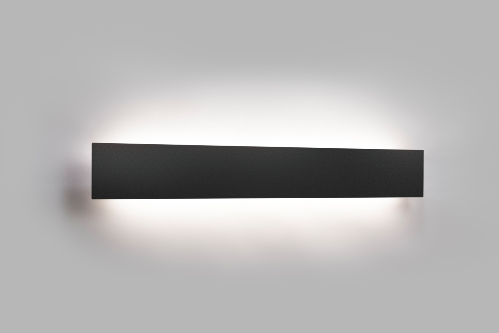 Locket är utformat så att det ser ut som om lampan svävar fritt från väggen. Frontplattan är faktiskt bredare än baksidan. Eftersom lampan är så smal kan du med fördel vända Cover upp och ner för att bättre utnyttja det väggutrymme du har, om utrymmet är trångt.