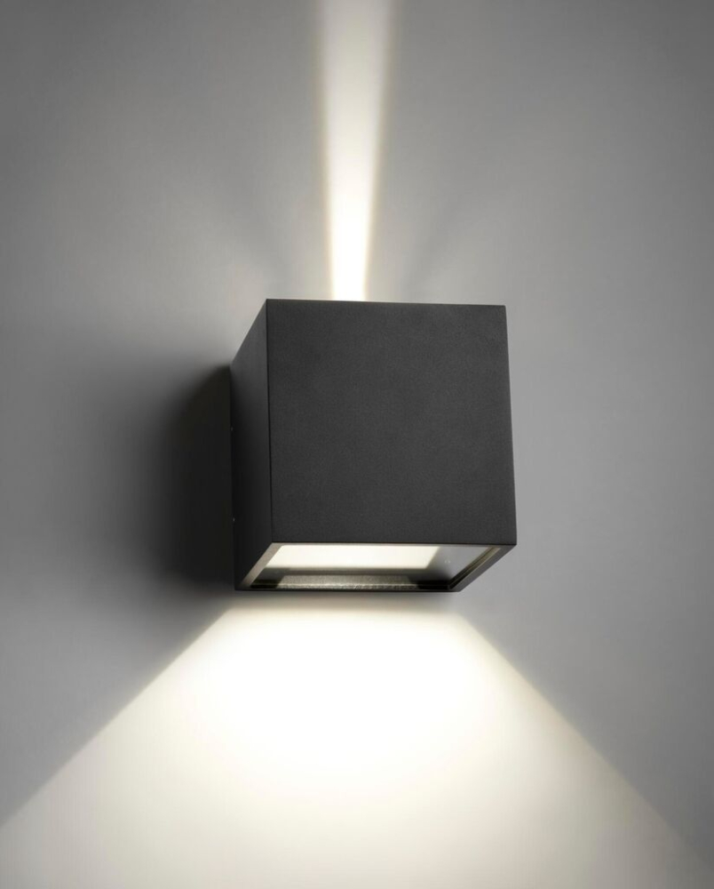 CUBE LED är en utomhuslampa som är klassisk och innovativ på samma gång. Den skarpa, rigorösa, stilistiska designen är helt minimalistisk och diskret, ändå är lampan ett designuttalande med skulpturala kvaliteter. Vackert i sig, men ännu vackrare när man sätter ihop flera och en spännande ljuseffekt skapas. CUBE, med sin tidlösa estetik, matchar både ultramoderna nybyggnader och äldre villor. Det är i sig ett litet arkitektoniskt mästerverk. Lampan lyser enligt upp/ner-principen, och har en inbyggd funktion som gör det möjligt att justera ljuset på väggen i olika bredder, så att "ljuskonerna" ändras. När du väljer ett smalt urval av lampor upptill får du ett brett längst ner och vice versa. På så sätt skapas ljusmosaiker på väggen eller taket. CUBE är designad av Ronni Gol och är en av LIGHT-POINTs signaturlampor och storsäljare. Tillverkad av aluminium och glas. Finns i två storlekar.