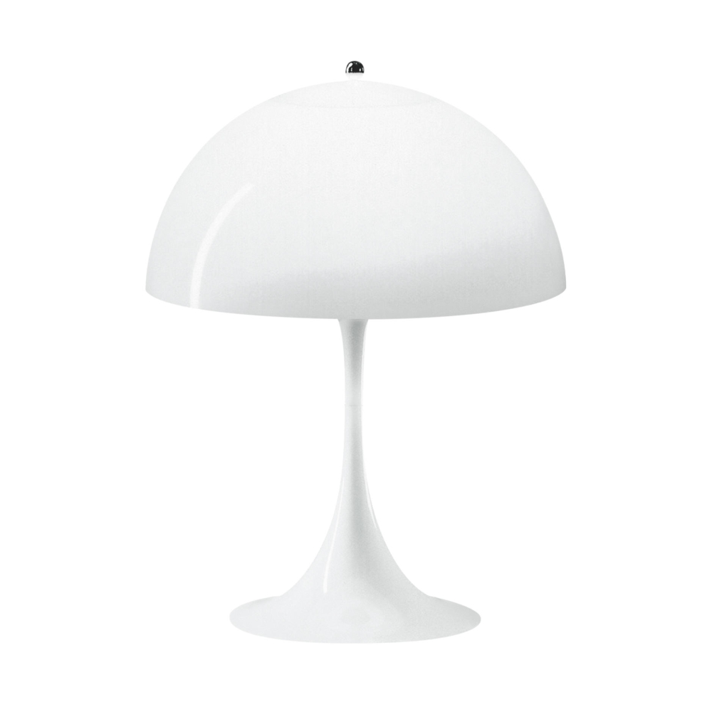 Den halvklotformade skärmen kombinerad med lampans trumpetformade fot ger inte bara ett estetiskt tilltalande utseende, utan också en funktionalitet som resulterar i ett bländfritt och behagligt ljus. Opalvita akrylmaterial framhäver Panthellas mjukhet och renhet, medan den genomskinliga texturen säkerställer en diffus belysning som ger värme och stämning till varje rum.
