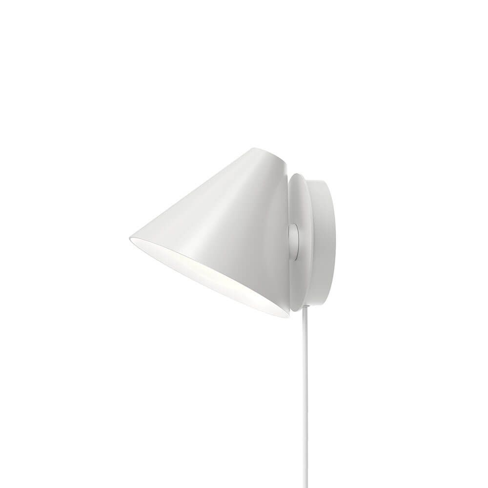 Konen kan monteras antingen med kabel eller direkt på ett eluttag. En plugg medföljer för att täcka kabelhålet. Vägglampan kan även monteras så att den är vänd uppåt och ger därigenom indirekt ljus och en fin ljuseffekt på väggen. Dessutom kan lampan vridas 45 grader, så att du enkelt kan justera ljusets riktning efter behov. Detta gör lampan särskilt lämplig att använda som läslampa, sänglampa eller gallerilampa. Du kan dock även välja att ha vägglampan Keglen hängande på kontoret eller i entrén där den kommer att avge ett bra och bländfritt ljus.
