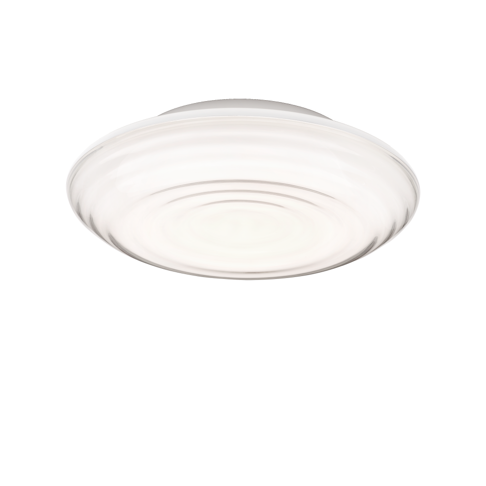 Ripls armaturen avger ett diffust ljus och har en konkav, klar front som liknar ringar i vattnet, vilket skapar ett unikt och dynamiskt uttryck. När ljuset bryts av dessa koncentriska ringar förändras uttrycket diskret beroende på synvinkeln. Det är som att se ögonblicket när föremål bryter vattenytan, fångat i ljusets form.