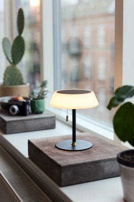 Med Halo Design eleganta sol/hybridbordslampa får du både funktionalitet och estetik i en och samma lösning. Denna snygga lampa är endast 19 cm hög och har en diameter på 17 cm, vilket gör den perfekt för allt från matbordet till uteplatsen.