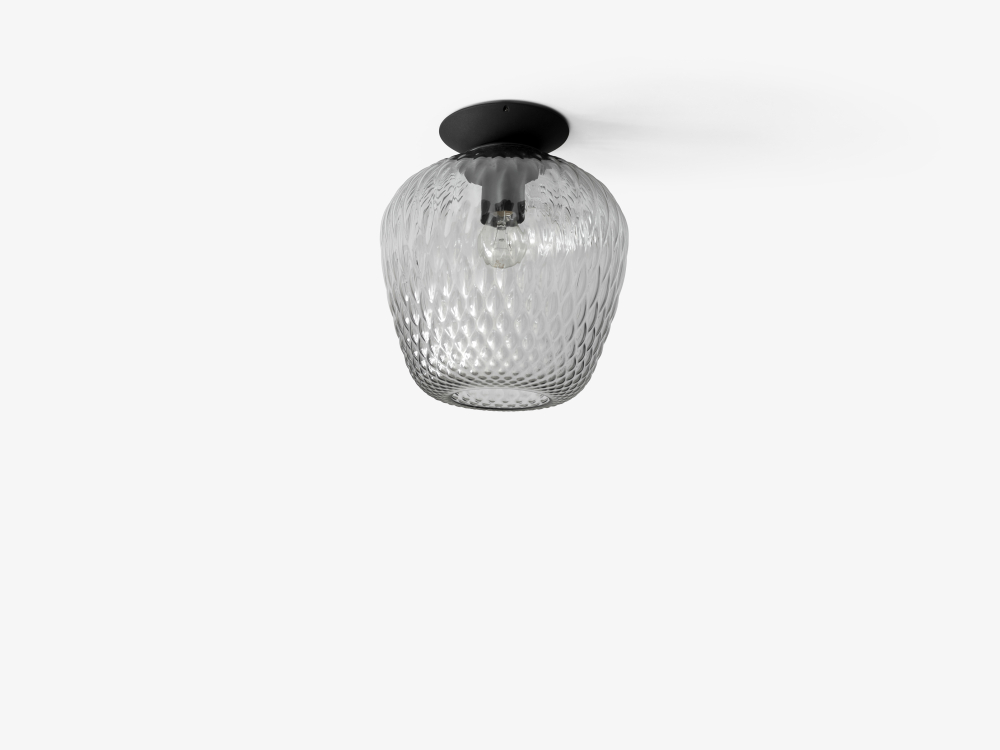 Blown SW5 taklampa från &Tradition, designad av Samuel Wilkinson, är ett unikt möte mellan modern estetik och traditionellt hantverk. Lampan är tillverkad i munblåst glas med en karakteristisk quiltad struktur, som ger ett vackert spel i ljuset och skapar en helt särskild stämning i rummet.