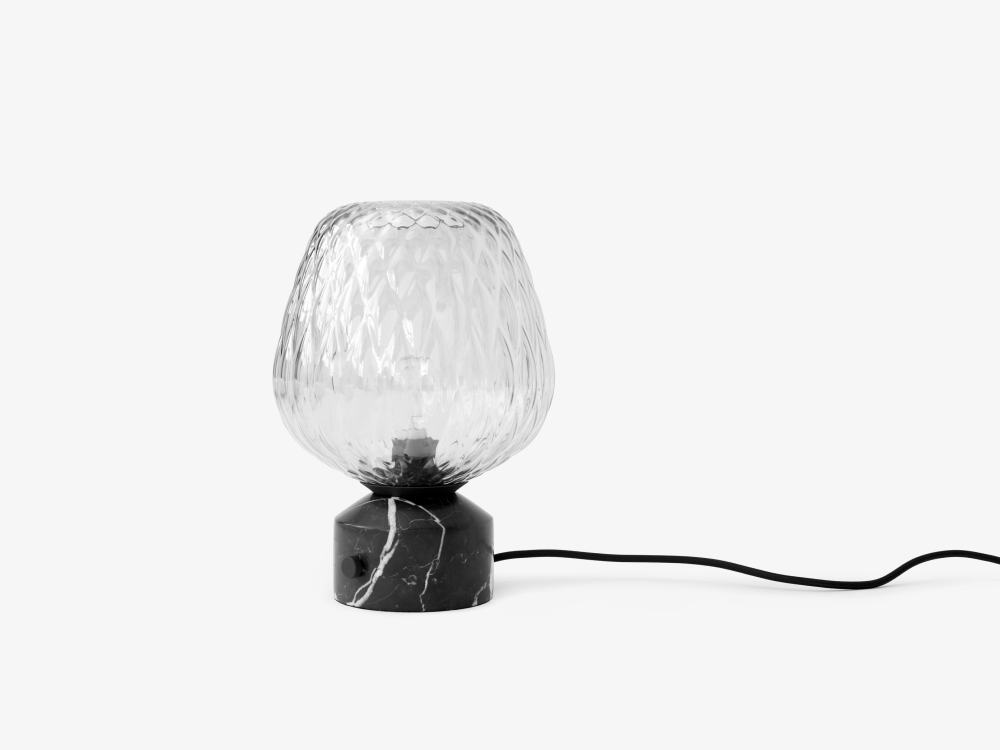 Den stilfulla Blown-lampan, utförd i munblåst glas, är designad av Samuel Wilkinson.
