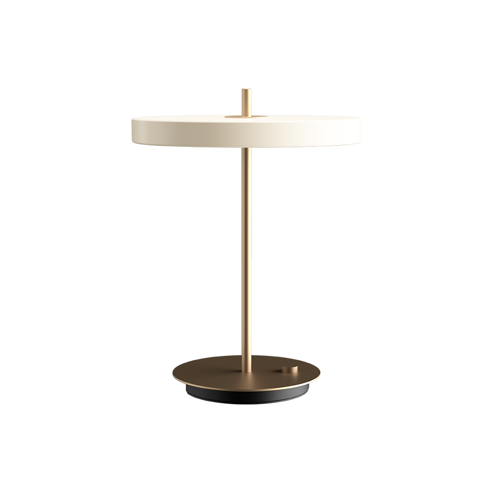 Lampan har integrerat LED-ljus vilket säkerställer mjuk belysning i rummet. Mässingsröret som går genom bordslampan som en vertikal axel ger en exklusivt uttryck. Asteria bordslampa har en dold USB-port så att du kan ladda din telefon även när lampan är släckt. Lampan är idealisk på skrivbordet eller som sänglampa, men tillför elegans till alla hörn av hemmet