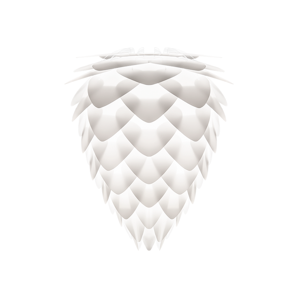 En riktigt vacker gör-det-själv-lampa från danska Umage med ett riktigt fint ljus En fin konformad lampskärm med vita plastblad inställd på en genomskinlig akrylram. De är superenkla att montera och de är praktiskt taget okrossbara.