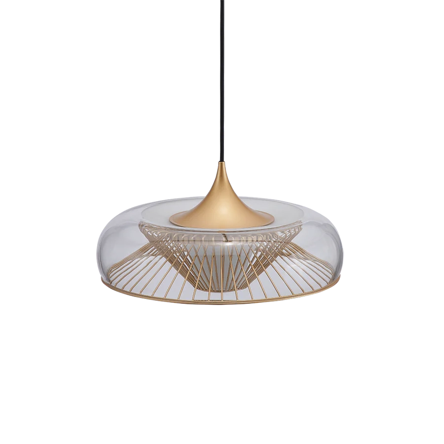 Den subtila kontrasten mellan de välvda glasytorna och de mässingsfärgade detaljerna skapar en visuell symfoni som passar perfekt in i både klassiska och moderna interiörer. Oavsett om den är i matsalen, vardagsrummet, restaurangerna eller hotellen fungerar Chordis både som en praktisk ljuskälla och ett dekorativt mittpunkt. Dess luftiga design säkerställer att den kompletterar en mängd olika interiörer, medan dess diskreta elegans ger en touch av grace till vilken inredning som helst.
