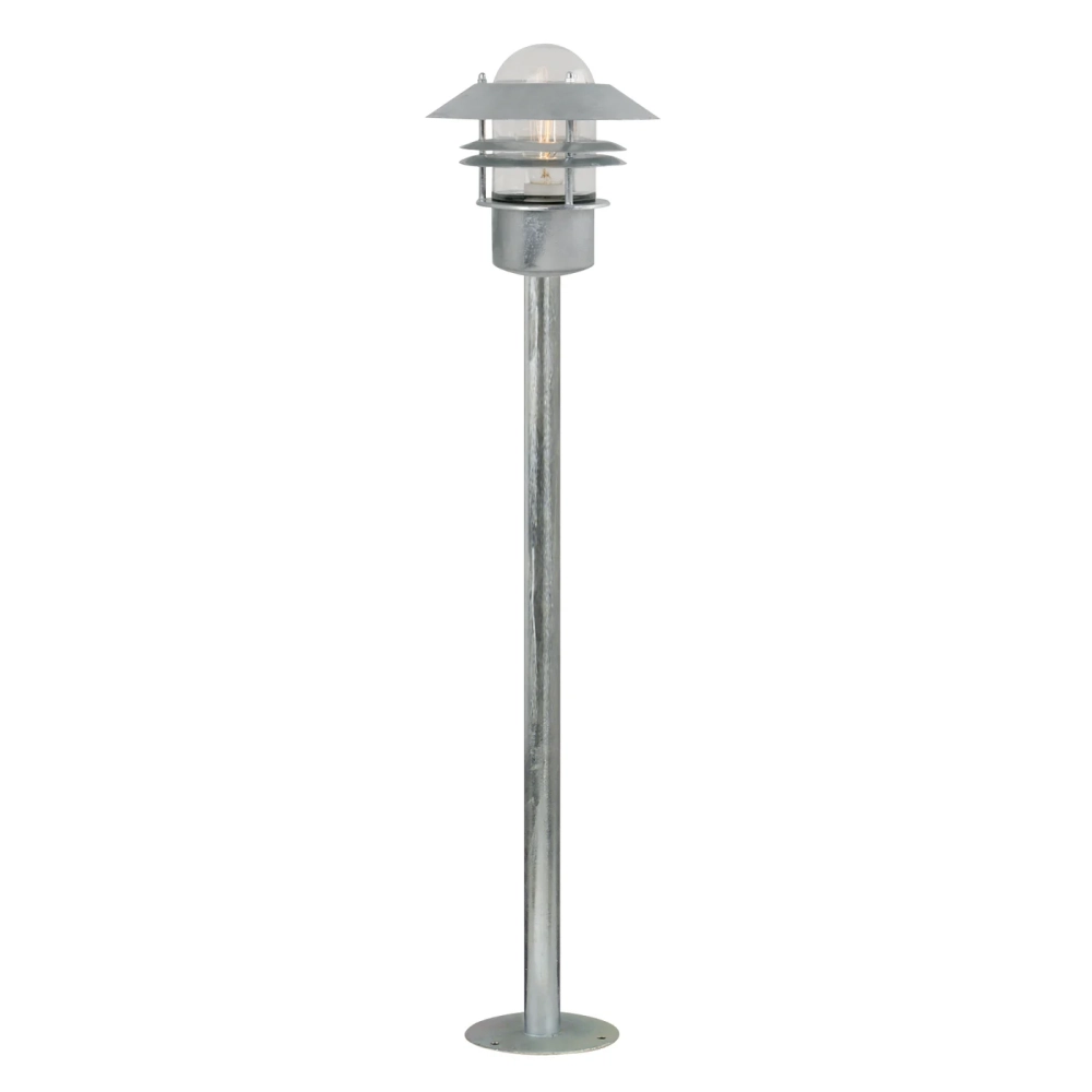 Den galvaniserade ytan gör lampan motståndskraftig i det nordiska klimatet. Vi rekommenderar lampor i galvaniserat stål för kustnära områden. Köp eventuellt till basen för nedgrävning, som passar till denna produkt.
