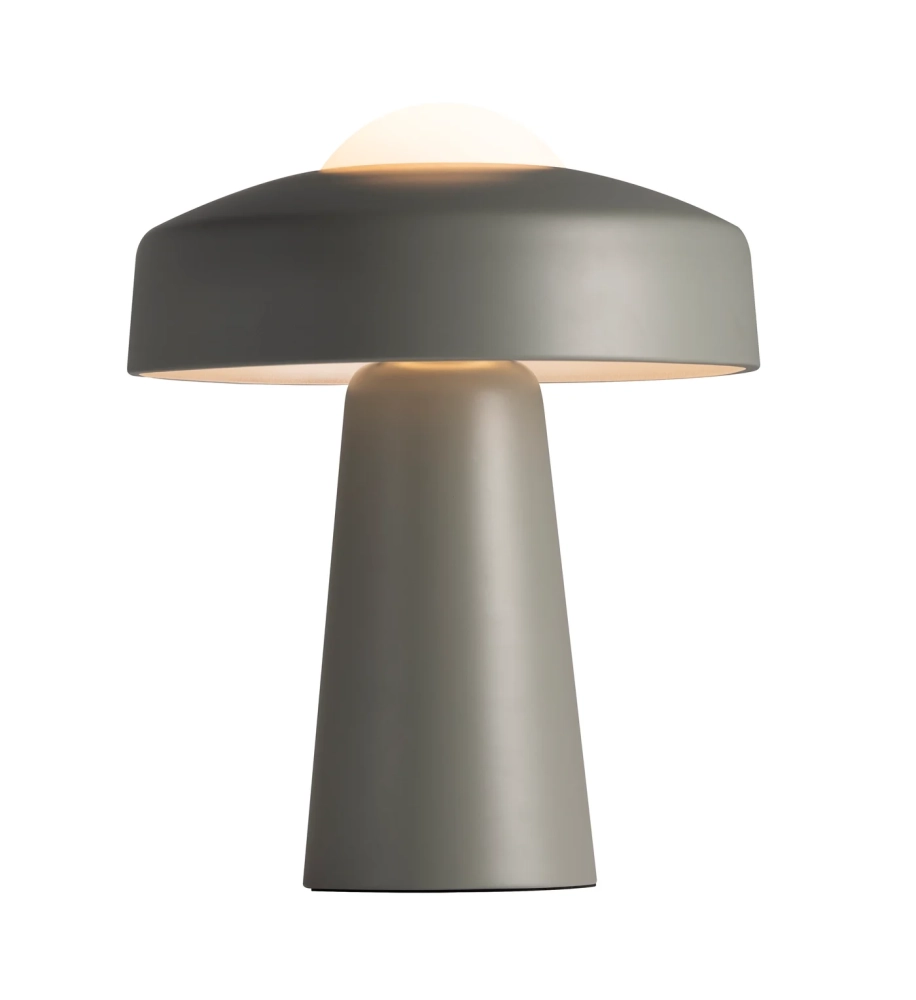 Inspirationen till det lätta formspråket är hämtad från svampar i skogsbrynet, och tillsammans med kombinationen av matt metall och glas skapas ett enkelt och elegant uttryck. Med den lilla glasdelen i toppen av lampan skapas både uppåtriktat och nedåtriktat ljus, vilket bidrar till en mysig atmosfär. Dessutom har lampan inbyggd på/av-funktion, som fungerar vid beröring överallt på lampans sockel, vilket gör att design och teknologi är vackert förenade i denna vackra lampa.