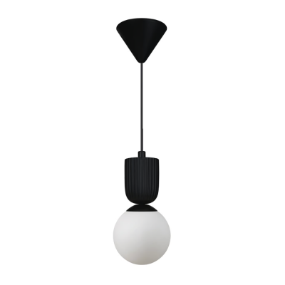 Opalglasets matta yta säkerställer en behaglig och bländfri ljusfördelning, vilket gör lampan lämplig som både fristående statement-pendel och som en vacker blickfång i en klunga.