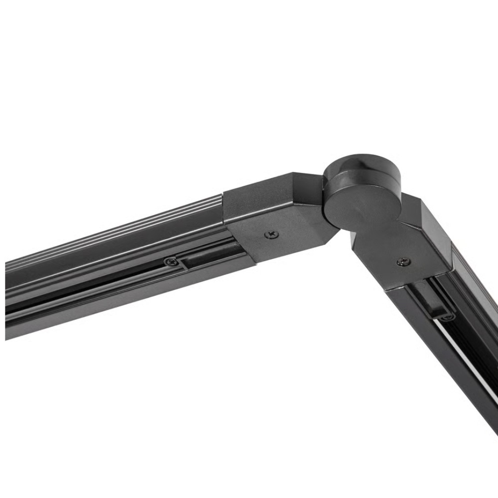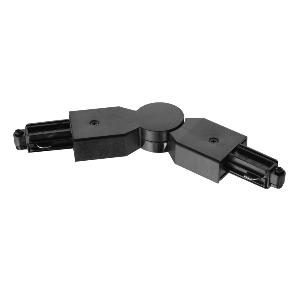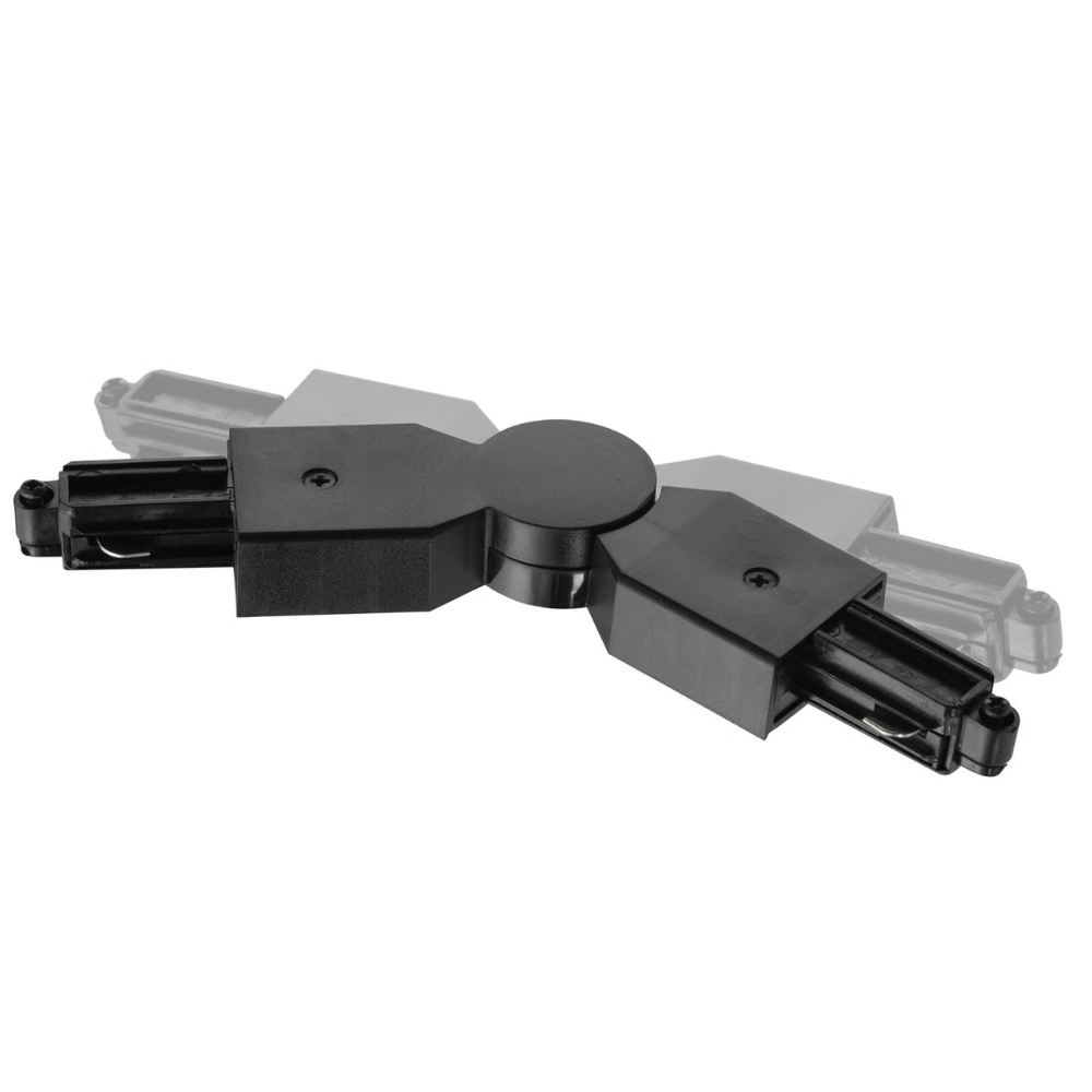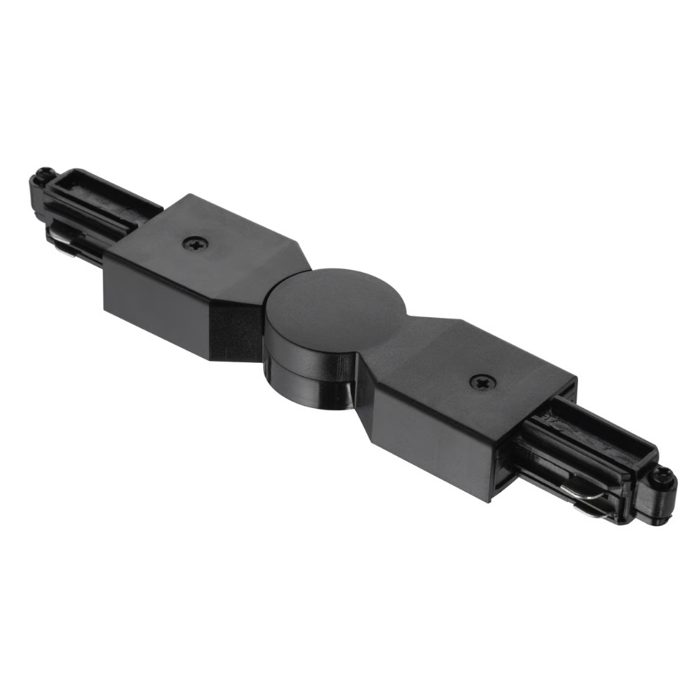 Vridbar strömadapter för sammankoppling mellan två skenor. Steglöst vridbar från 7-290 grader.