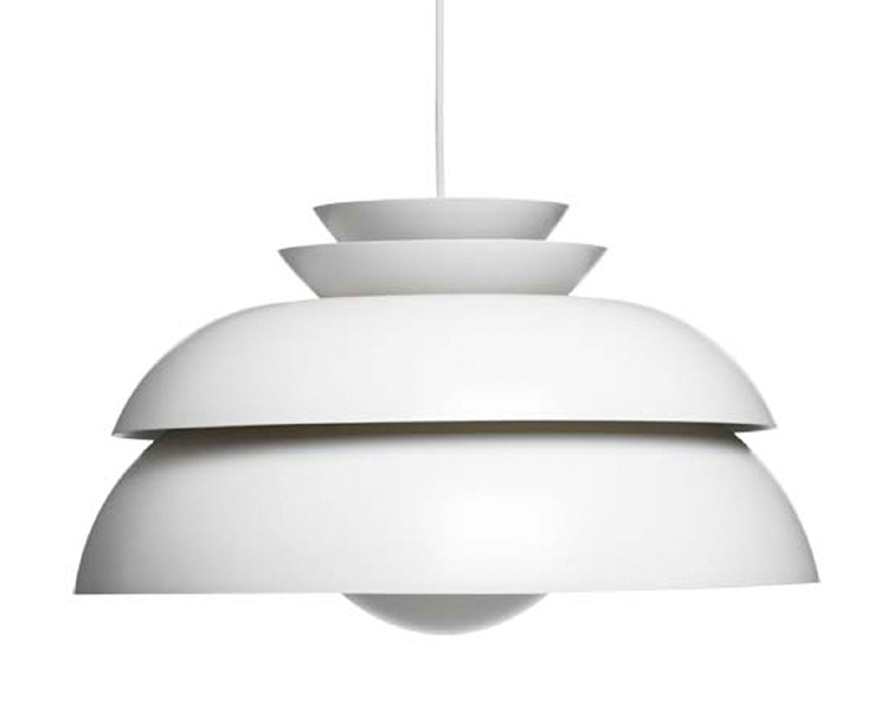 Concert pendeln är uppbyggd av fyra metallskärmar och en parabol, som är monterad på ett syramatat glasupphäng. Lampan ger ett behagligt och bländfritt ljus, där den nedersta skärmen leder ljuset ner i parabolen, som är med och säkerställer att ljuset inte bländar, oavsett vilken höjd pendeln placeras i. De två översta, uppåtvända skärmarna och en del av sladden upplyses också. Concert pendelns glasupphäng gör att det sänds ut ett jämnt och behagligt ljus mellan de enskilda skärmarna, vilket ger en otroligt vacker rumsbelysning.