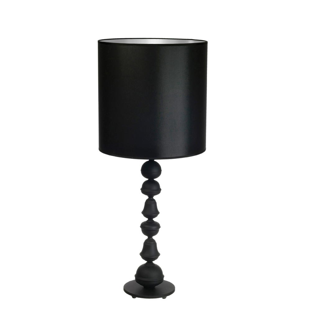 Inspirationen bakom Sheik Bordslampa kommer från den orientaliska estetiken på 1920-talet, vilket tydligt syns i lampans sensuella former och raffinerade uttryck. Den eleganta silhuetten påminner om en klassisk vattenpipa och kombinerar romantiska detaljer med en sofistikerad balans mellan ljus och material. Den cylindriska tygskärmen i matt svart är öppen i båda ändar och skapar ett mjukt, behagligt och diffust ljus som sprider värme och stämning i rummet.